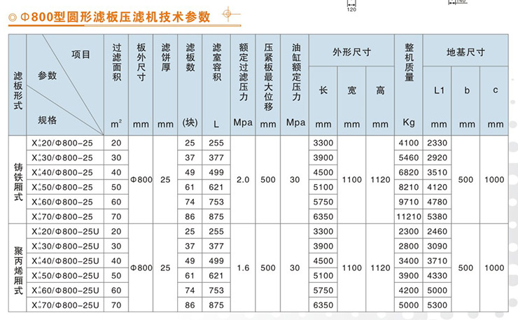 800型橡膠隔膜壓榨式壓濾機(jī)